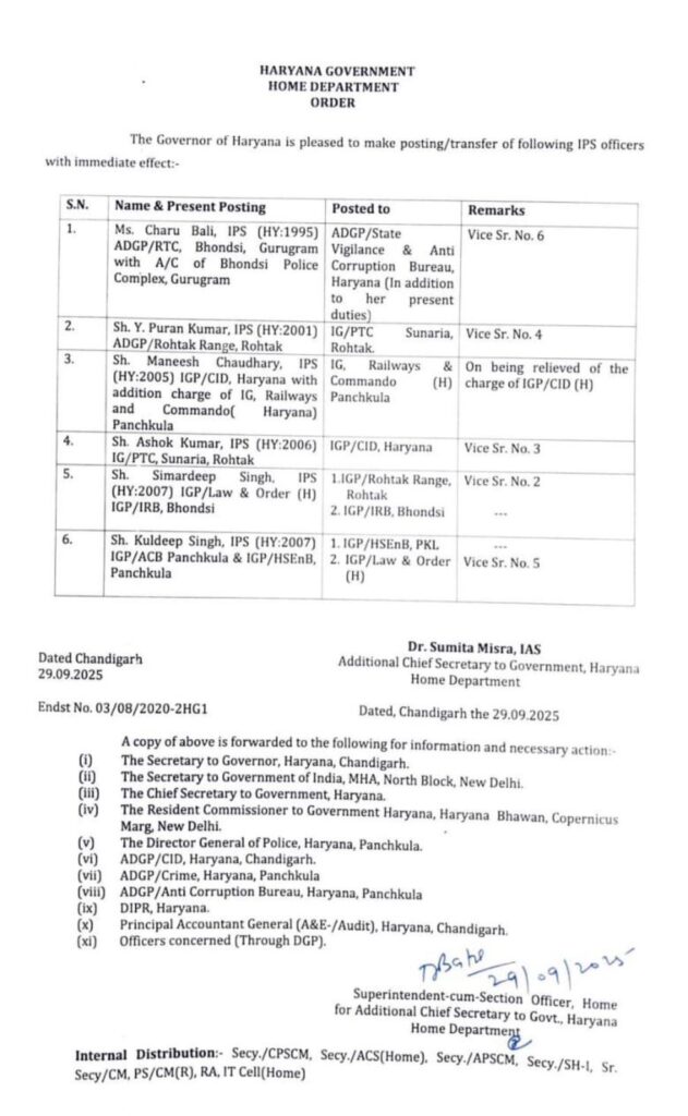 IPS Suicide Case Update: ਰੋਹਤਕ SP ਨੂੰ ਹਟਾਇਆ ਗਿਆ ਦੇਖੋ ਕਿੱਥੇ ਦਿੱਤੀ ਜਿੰਮੇਦਾਰੀ ਚੰਡੀਗੜ੍ਹ ਵਿਖੇ ਏਡੀਜੀਪੀ ਵੱਲੋਂ ਕੀਤੀ ਗਈ ਆਤਮਹੱਤਿਆ ਦੇ ਵਿੱਚ ਲਿਖੇ ਗਏ ਸੁਸਾਈਡ ਨੋਟ ਦੇ ਵਿੱਚ ਜਿਨਾਂ ਆਈਪੀਐਸ ਅਧਿਕਾਰੀਆਂ ਤੇ ਆਰੋਪ… Share this:Share Click to share on Facebook (Opens in new window) Facebook Click to share on X (Opens in new window) X Click to email a link to a friend (Opens in new window) Email Click to share on Telegram (Opens in new window) Telegram Click to share on WhatsApp (Opens in new window) WhatsApp Spread the love