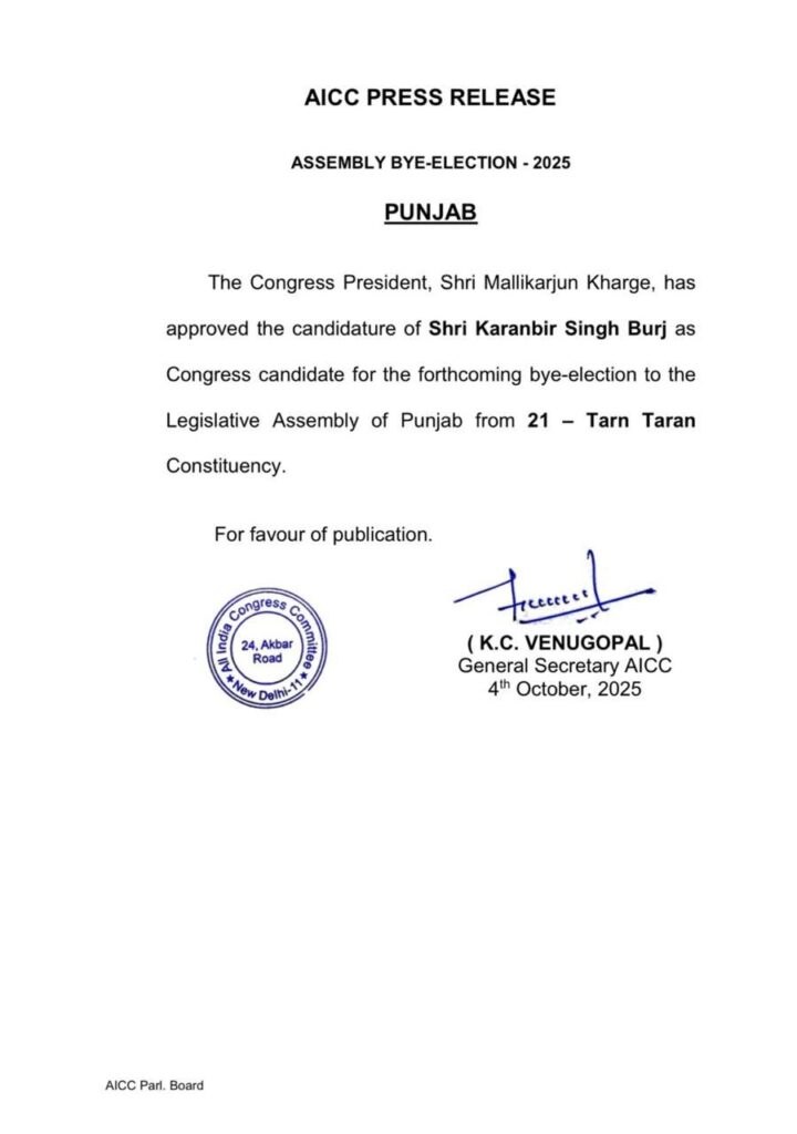 HomeTarn Taran By Poll ਤਰਨ ਤਾਰਨ ਜਿਮਨੀ ਚੋਣ ਚ ਕਾਂਗਰਸ ਨੇ ਉਮੀਦਵਾਰ ਐਲਾਨਿਆ Tarn Taran By Poll ਤਰਨ ਤਾਰਨ ਜਿਮਨੀ ਚੋਣ ਚ ਕਾਂਗਰਸ ਨੇ ਉਮੀਦਵਾਰ ਐਲਾਨਿਆ byNews Tokri ਤਰਨ ਤਾਰਨ ਜਿਮਨੀ ਚੋਣ ਚ ਕਾਂਗਰਸ ਦੇ ਉਮੀਵਾਰ ਹੋਣਗੇ ਕਰਨਬੀਰ ਸਿੰਘ ਬੁਰਜ ਜਾਰੀ ਕਰੀ ਚਿੱਠੀ Share this:Share Click to share on Facebook (Opens in new window) Facebook Click to share on X (Opens in new window) X Click to email a link to a friend (Opens in new window) Email Click to share on Telegram (Opens in new window) Telegram Click to share on WhatsApp (Opens in new window) WhatsApp Spread the love