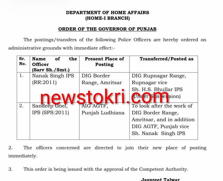 Home2 IPS ਅਫ਼ਸਰਾਂ ਦੇ ਤਬਾਦਲੇ, DIG ਭੁੱਲਰ ਦੀ ਥਾਂ ਨਾਨਕ ਸਿੰਘ ਨੂੰ ਮਿਲੀ ਰੋਪੜ ਰੇਂਜ ਦੀ ਜਿੰਮੇਦਾਰੀ 2 IPS ਅਫ਼ਸਰਾਂ ਦੇ ਤਬਾਦਲੇ, DIG ਭੁੱਲਰ ਦੀ ਥਾਂ ਨਾਨਕ ਸਿੰਘ ਨੂੰ ਮਿਲੀ ਰੋਪੜ ਰੇਂਜ ਦੀ ਜਿੰਮੇਦਾਰੀ byNews Tokri Share this:Share Click to share on Facebook (Opens in new window) Facebook Click to share on X (Opens in new window) X Click to email a link to a friend (Opens in new window) Email Click to share on Telegram (Opens in new window) Telegram Click to share on WhatsApp (Opens in new window) WhatsApp Spread the love
