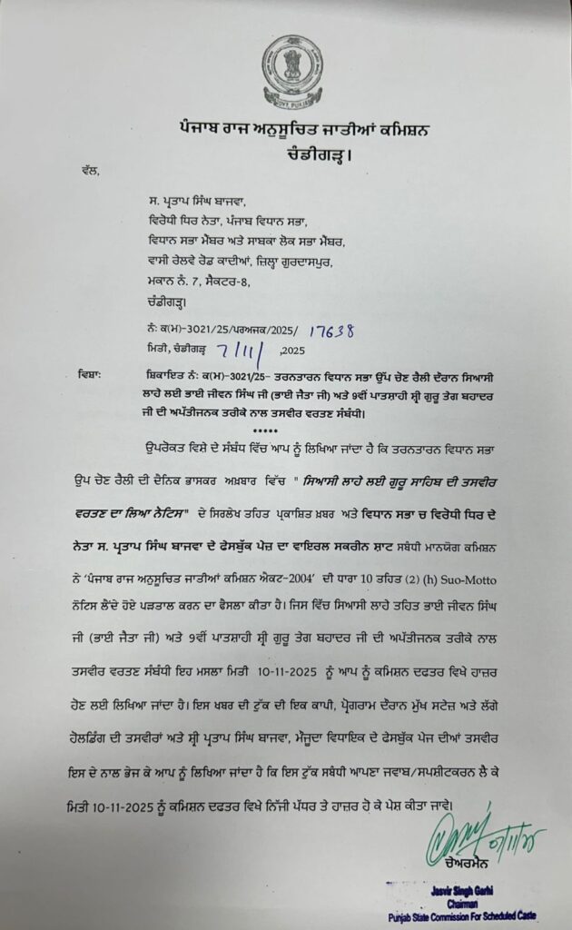 * ਡਿਪਟੀ ਕਮਿਸ਼ਨਰ ਤੋਂ ਰਿਪੋਰਟ ਤਲਬ: ਇਸ ਦੇ ਨਾਲ ਹੀ, ਮਾਮਲੇ ਦੀ ਗੰਭੀਰਤਾ ਨੂੰ ਦੇਖਦਿਆਂ, ਸੰਬੰਧਿਤ ਜ਼ਿਲ੍ਹੇ ਦੇ ਡਿਪਟੀ ਕਮਿਸ਼ਨਰ (DC) ਨੂੰ ਵੀ ਤਲਬ ਕੀਤਾ ਗਿਆ ਹੈ। ਡਿਪਟੀ ਕਮਿਸ਼ਨਰ ਨੂੰ 17 ਨਵੰਬਰ ਤੱਕ ਇਸ ਪੂਰੇ ਮਾਮਲੇ ਦੀ ਵਿਸਥਾਰਤ ਰਿਪੋਰਟ ਪੇਸ਼ ਕਰਨ ਦਾ ਨਿਰਦੇਸ਼ ਦਿੱਤਾ ਗਿਆ ਹੈ।