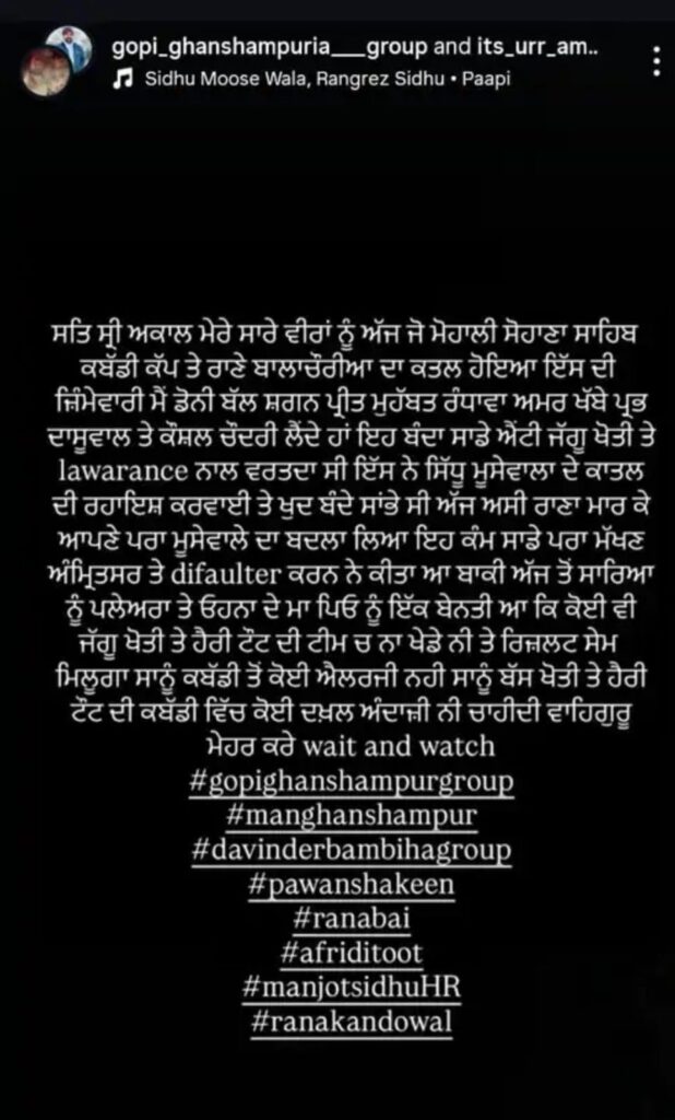 Group เจจเฉ เจเจชเจฃเฉ Post เจตเจฟเฉฑเจ เจฒเจฟเจเจฟเจ เจนเฉ เจเจฟ เจฐเจพเจฃเจพ เจฌเจฒเจพเจเฉเจฐเฉ เจจเฉเฉฐ เจเจธ เจฒเจ Target เจเฉเจคเจพ เจเจฟเจ, เจเจฟเจเจเจเจฟ เจเจธเจจเฉ เจธเจฟเฉฑเจงเฉ เจฎเฉเจธเฉเจตเจพเจฒเฉ เจฆเฉ เจเจพเจคเจฒเจพเจ (Sidhu Moosewalaโs Killers) เจจเฉเฉฐ Support เจเฉเจคเจพ เจธเฉเฅค