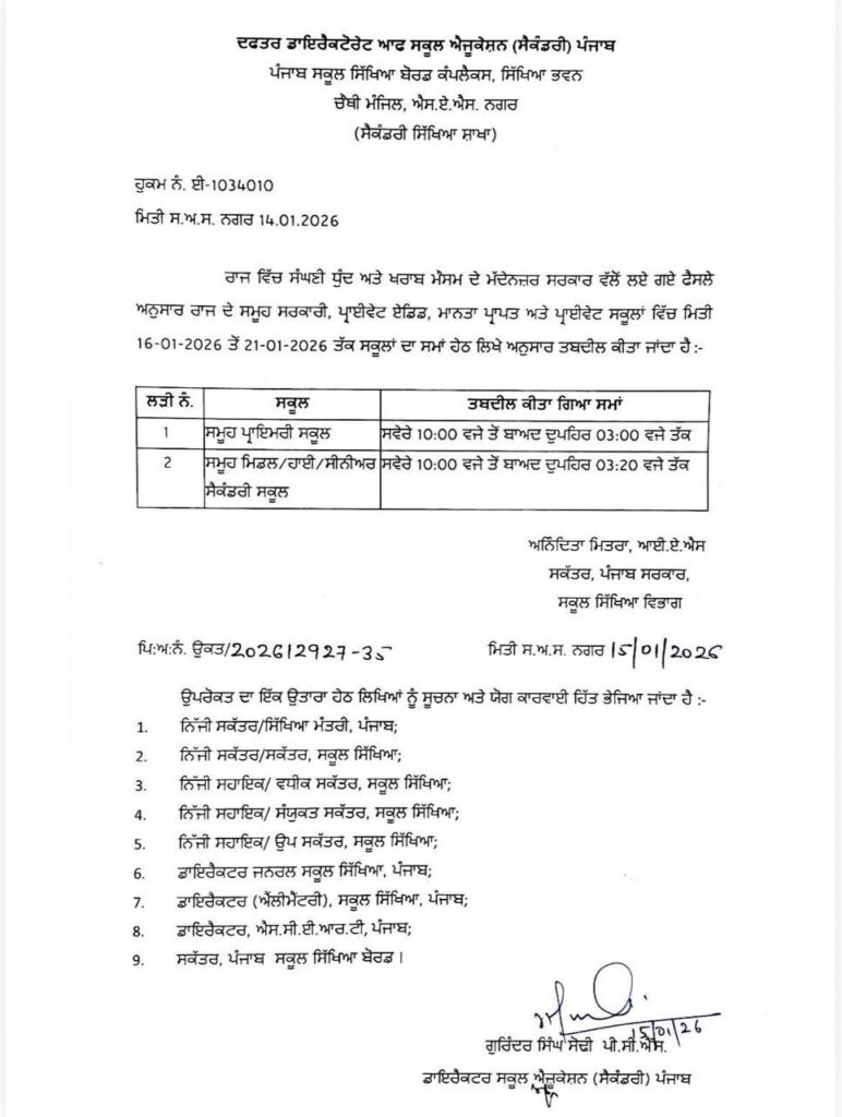 Middle/High/Senior Secondary Schools: เจธเจตเฉเจฐเฉ 10:00 AM เจคเฉเจ เจฆเฉเจชเจนเจฟเจฐ 3:20 PM เจคเฉฑเจเฅค