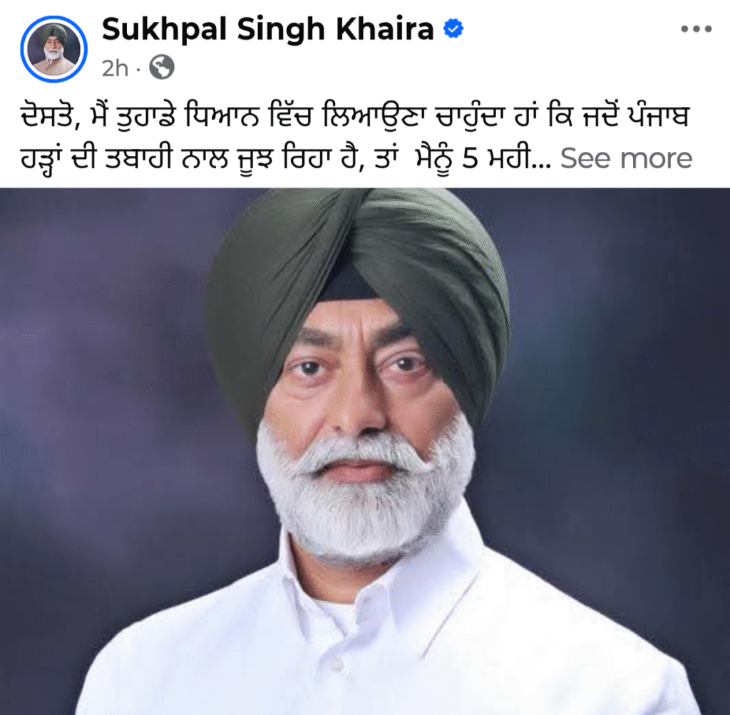 सुखपाल सिंह खैरा की तरफ से डाली गई पोस्ट का हिंदी ट्रांसलेट👇