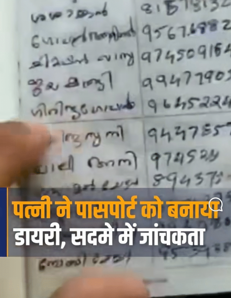 केरल का एक वीडियो सोशल मीडिया पर जमकर वायरल हो रहा है जिसमें की दिखाई जा रहा है कि कैसे एक महिला ने पासपोर्ट को डायरी बनाकर रख दिया ।क्योंकि जब पासपोर्ट री न्यू होने के लिए पहुंचा तो उसमें जांच की गई तो लोगों के फोन नंबर घर का हिसाब किताब लिखा हुआ था। जिसको लेकर सोशल मीडिया पर लिखा जा रहा है कि जब पासपोर्ट री न्यू होने के लिए अधिकारियों के पास पहुंचा तो वह बेहोश हो गए। हालांकि यह एक तंज भरा लिहाजा था। जिसमें की आमतौर पर हम देखते हैं कि पासपोर्ट को लोग बेहद सहज कर रखते हैं और ध्यान से इस्तेमाल के लिए रखा जाता है पर यह पासपोर्ट एक महिला का बताया जा रहा है जिसे उसके खाली पन्नों को अपने हिसाब तक के लिए इस्तेमाल कर लिया हालांकि यह जानकारी नहीं बताई गई कि अगर कोई ऐसा करता है तो उसमें किसी तरह के परेशानी न्यू करने के समय आती है या फिर नहीं।